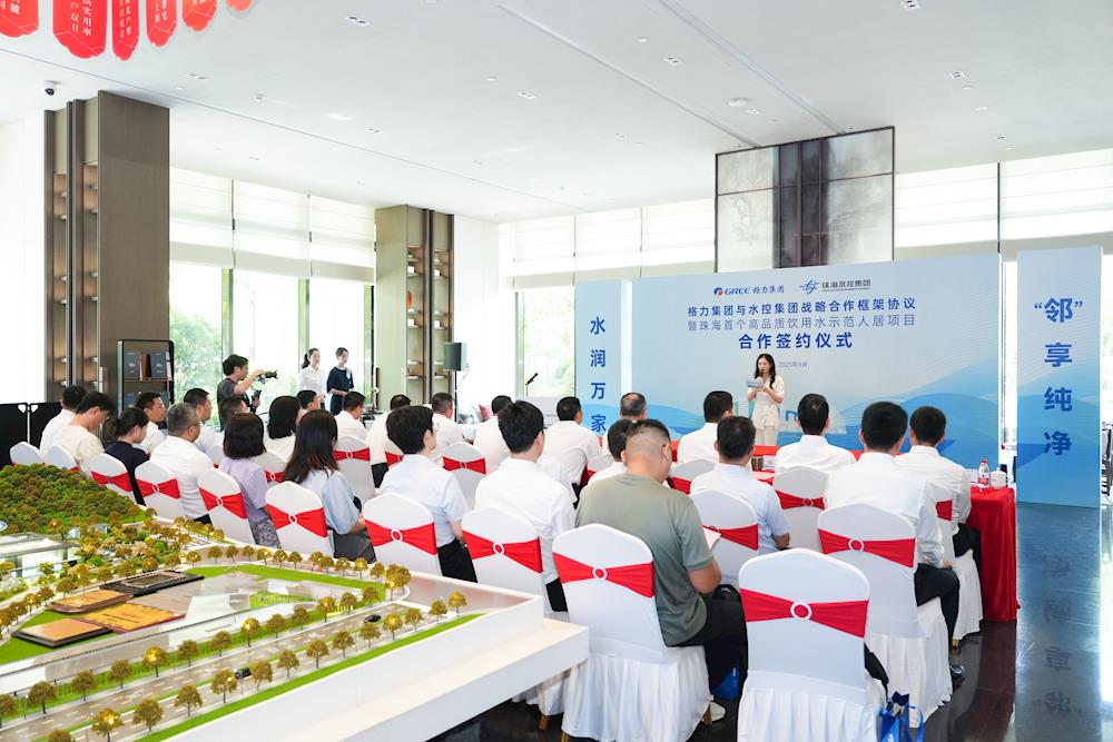 當(dāng)天,項(xiàng)目合作雙方——珠海格力集團(tuán)有限公司與珠海水務(wù)環(huán)境控股集團(tuán)有限公司簽署戰(zhàn)略合作框架協(xié)議,合作圍繞項(xiàng)目資源合作、供排水保障服務(wù)、工程領(lǐng)域及水務(wù)科技合作創(chuàng)新等維度展開,雙方將對(duì)接海島水資源利用方案、推進(jìn)高品質(zhì)飲用水入戶,水控集團(tuán)還將為格力集團(tuán)項(xiàng)目提供“全鏈條”水務(wù)支持,并以新規(guī)高品質(zhì)人居項(xiàng)目為試點(diǎn),推進(jìn)市政直飲水入戶,探索水務(wù)科技應(yīng)用。簽約儀式上,雙方共同啟動(dòng)珠海首個(gè)高品質(zhì)飲用水示范人居項(xiàng)目。此次合作既是國有企業(yè)跨領(lǐng)域協(xié)同服務(wù)民生的創(chuàng)新實(shí)踐,也為珠海構(gòu)建更安全、更健康的城市供水網(wǎng)絡(luò)按下“加速鍵”。